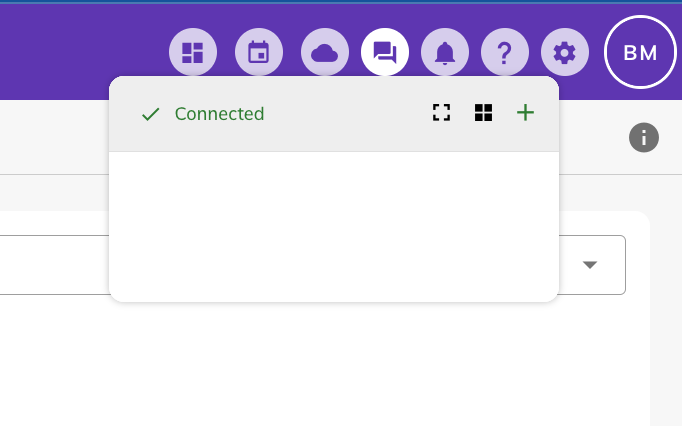 Start a new chat: Click the + icon to search for an existing person or team, or create a group chat with people from your workspace.