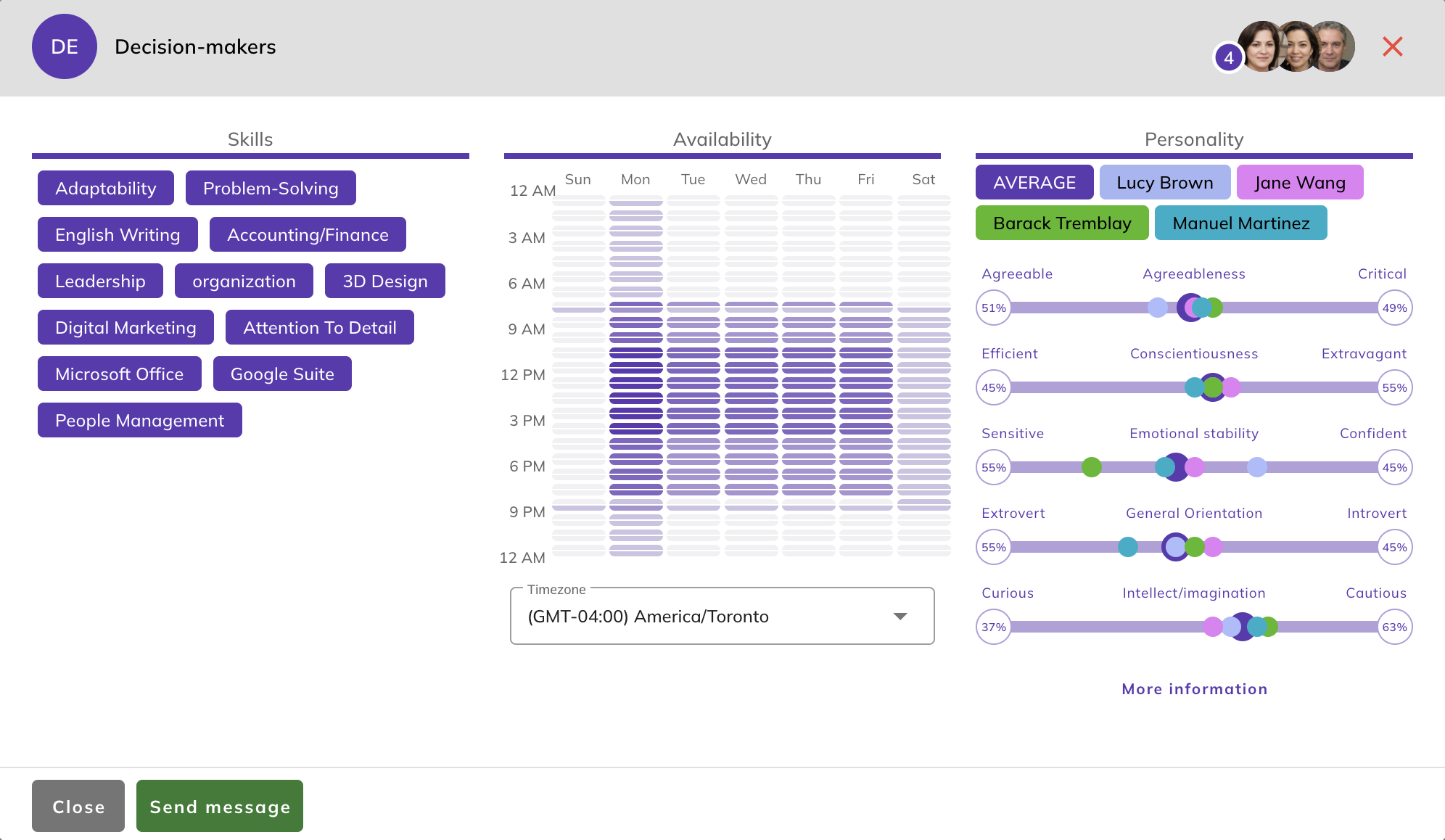 Your profile lets your team know who you are, what you can do and when you are free. It also allows Pandos Team Formation Assistant to build well-matched teams.