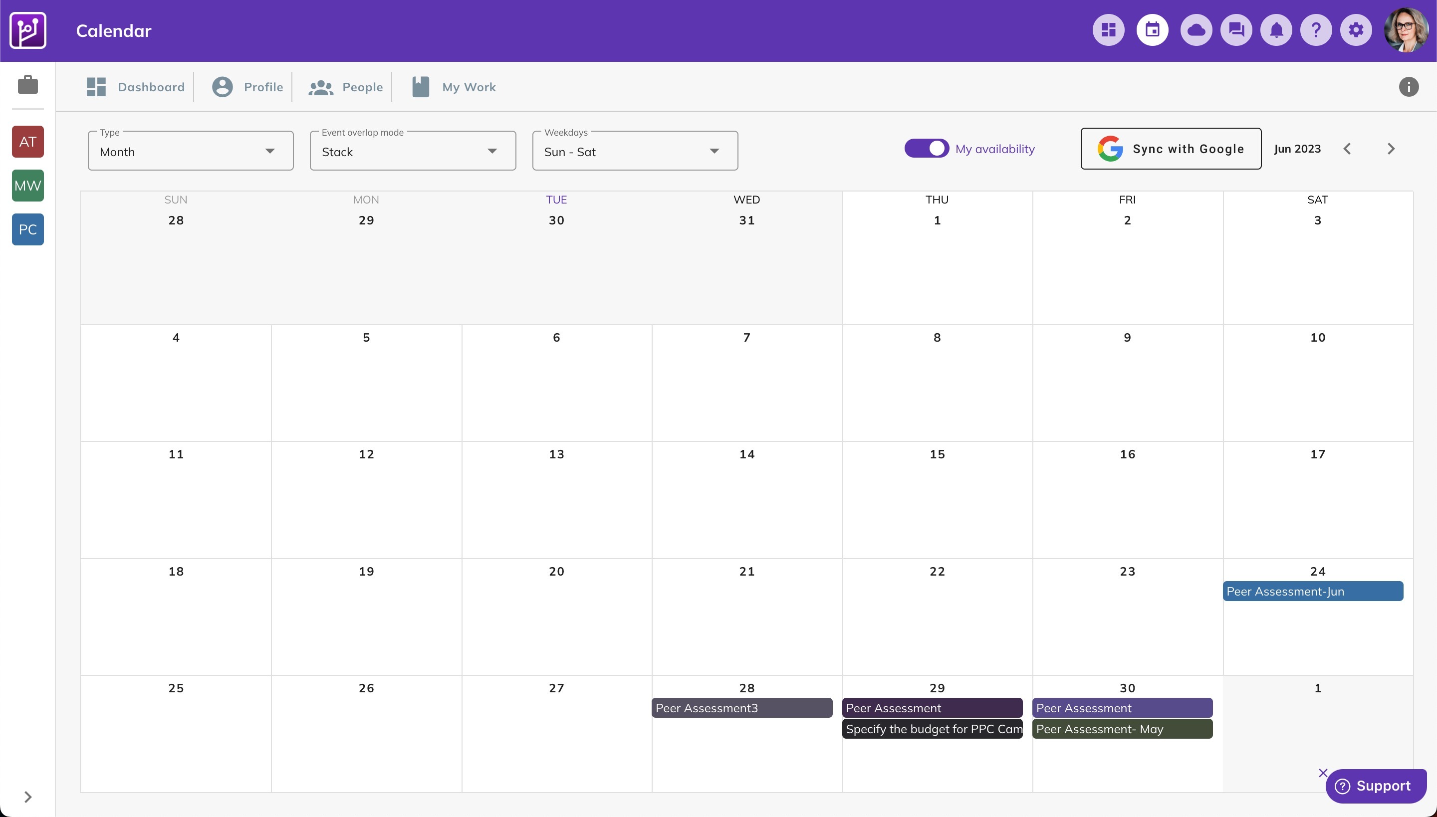 - Click on any event, deadline, or meeting on the calendar to get more details or be redirected to its corresponding page.
