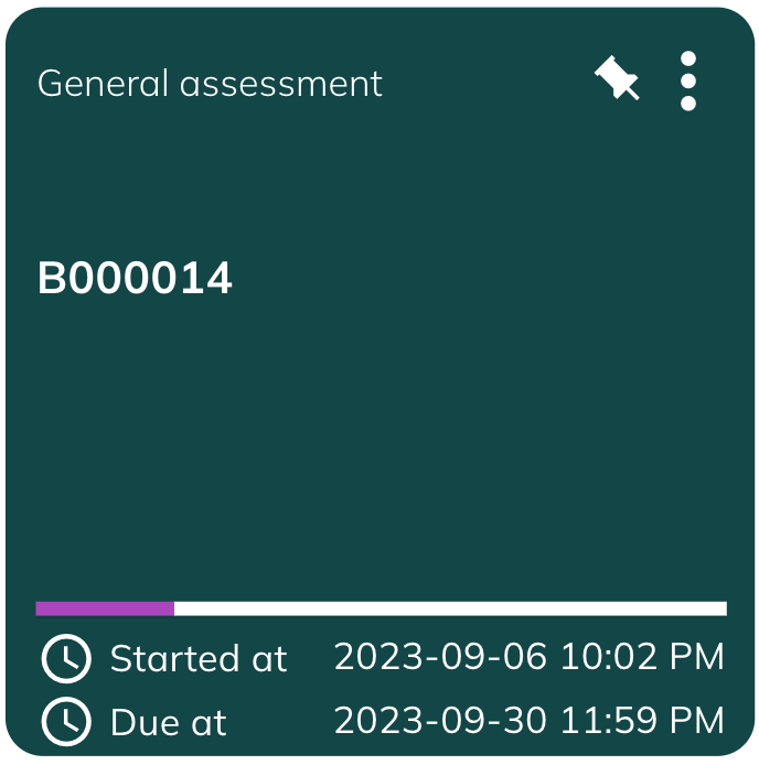 " will appear on top of the tile showing the assessment is pinned. - Click the tilted pin icon to unpin the assessment