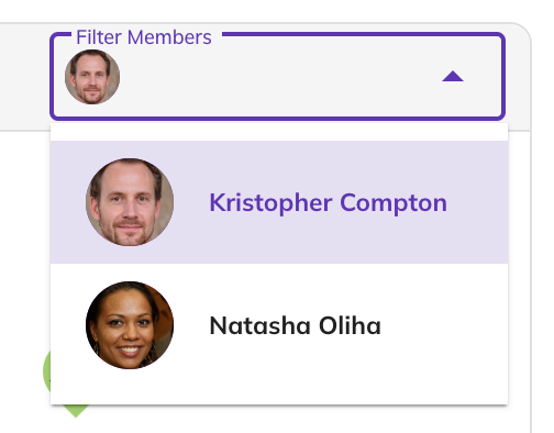 | If there are many respondents and you need to view a specific person’s responses, use the Filter Member dropdown at the top of the Assessment Results section to select their name. |