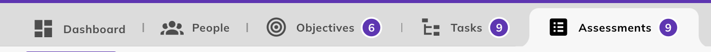 Assessments, similar to Objectives and Tasks pages, are categorized into three groups: