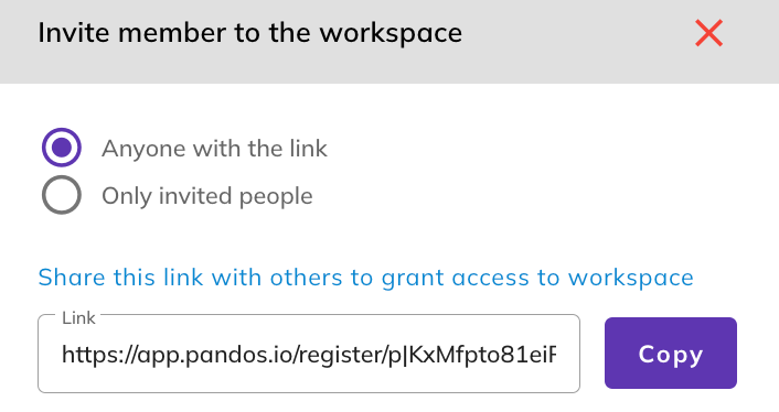 2. Email: Add names and emails so Pandos can send invitation emails with the workspace joining link.